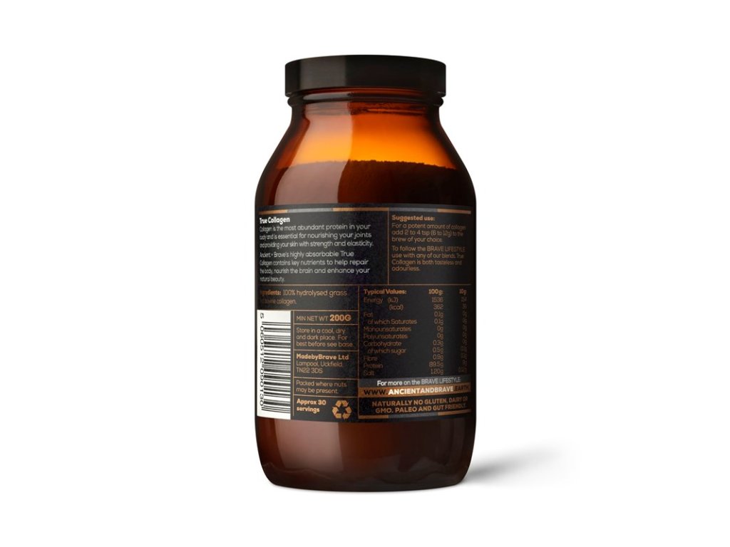 Grass Fed True Collagen не е „коригиран“ с баластни компоненти като изкуствени подсладители, изкуствени оцветители или други добавки, които не се срещат естествено в природата. Кристално чистият ензимен хидролизат от най-високо качество се обработва във възможно най-краткия производствен процес и след това се опакова в инертен стъклен контейнер.