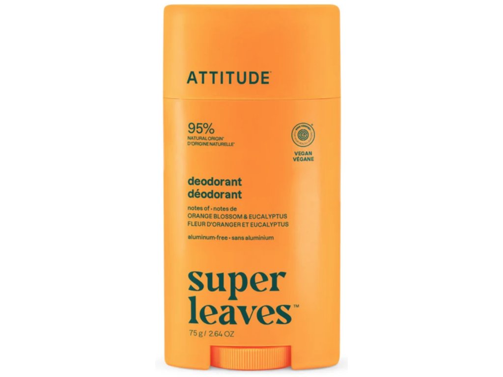 ATTITUDE Натурален дезодорант Super Leaves, портокалов цвят & евкалипт, 75 г