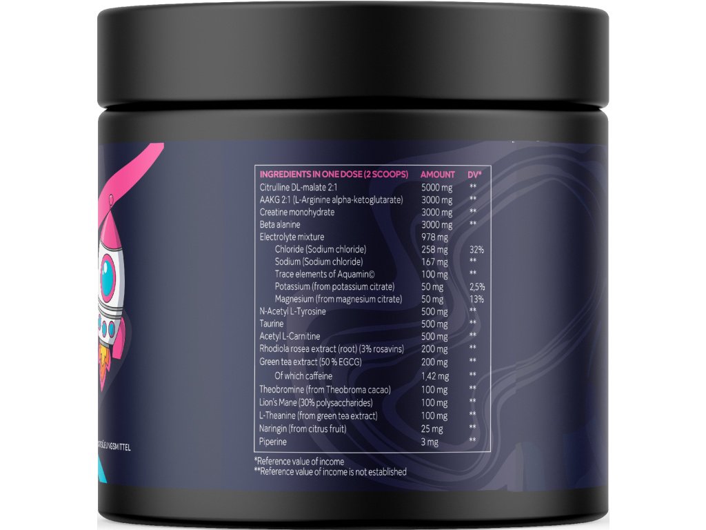 Тази добавка е изградена върху синергия от съставки, които често се използват, за да ви вкарат в LAUF преди тренировка и да ви помогнат да постигнете по-интензивни усещания по време на тренировката. Цитрулин малат, AAKG и бета аланин формират основата за усещането за напомпване и желанието да не се отказвате. Включихме и вещества като N-ацетил-L-тирозин и ацетил-L-карнитин за тунелно зрение, така че нищо да не ви разсейва и да имате само една задача пред себе си, която трябва да бъде изпълнена.