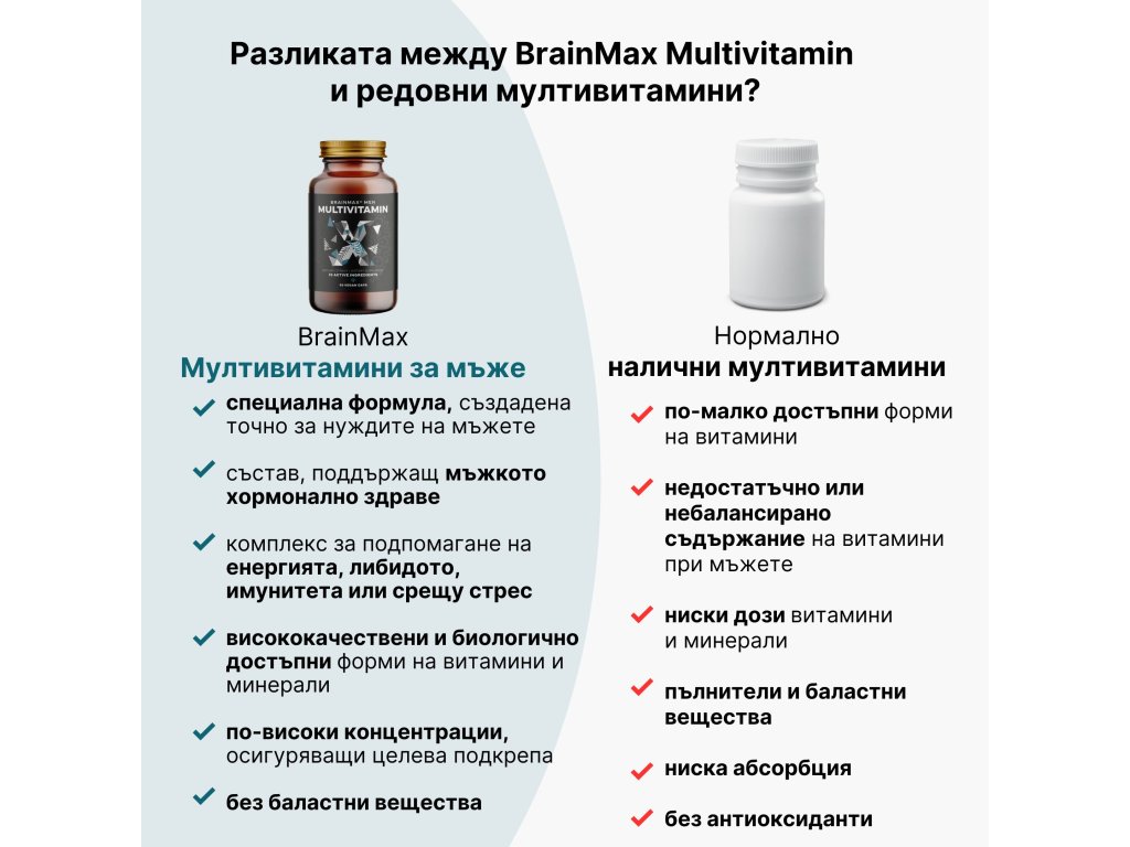 BrainMax Men Multivitamin, мултивитамини за мъже, 90 растителни капсули 33 активни съставки за мъжкото здраве, имунитет, енергия и потентност, хранителна добавка