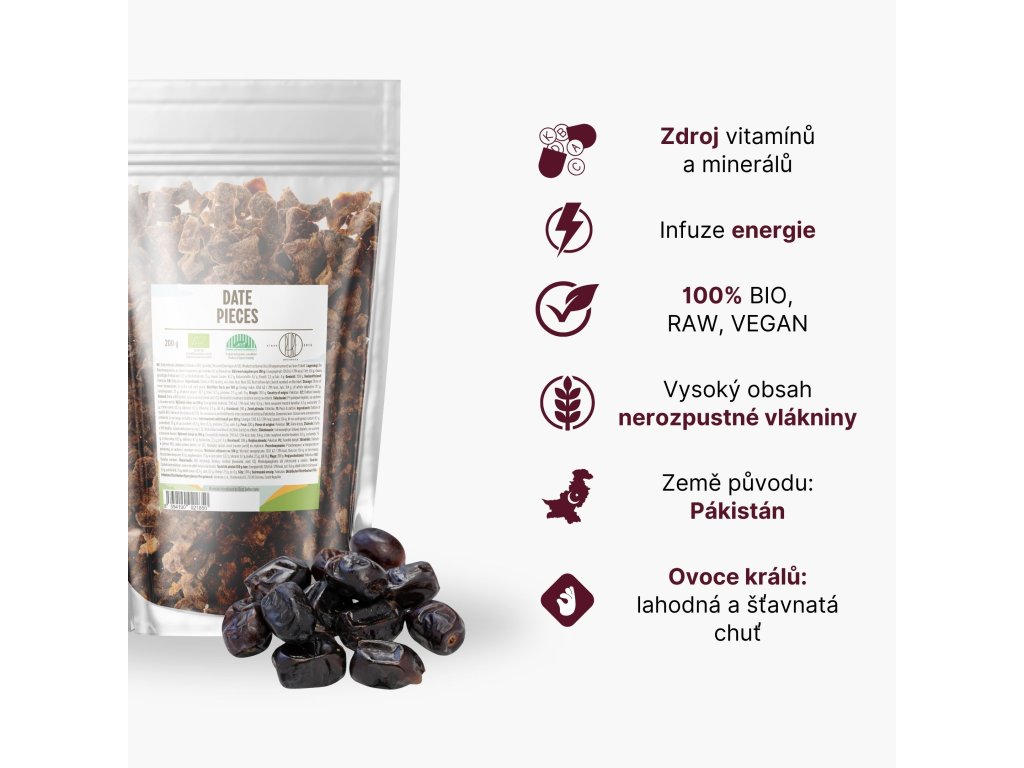 BrainMax Pure Dates сушени парчета BIO, 200 g - EXP. *Сертификат CZ-BIO-001, валиден до: 31.12.2025 г.