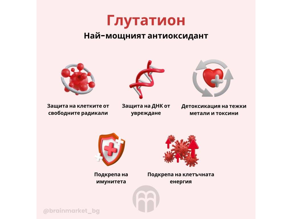 - Форма на глутатион, подходяща за увеличаване на антиоксидантния капацитет на невроните в мозъка.