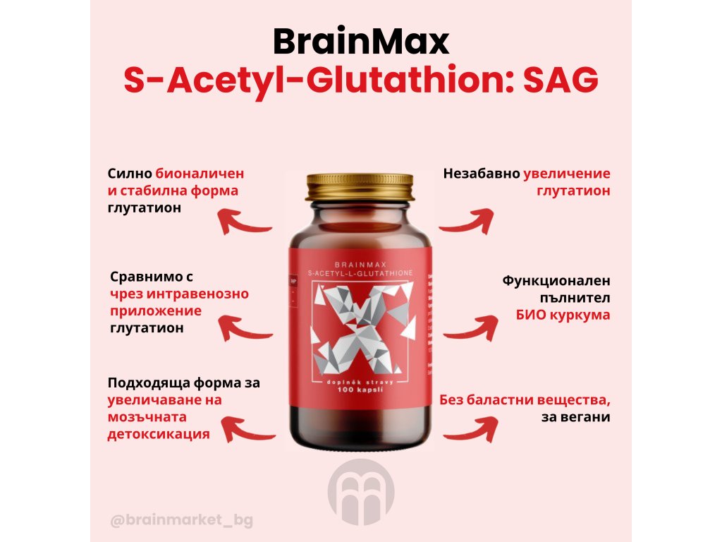BrainMax S-Acetyl-L-Glutathione, SAG, 100 mg, 4 растителни капсули, SAMPLE