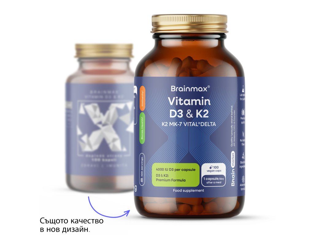 Витамин D3 (холекалциферол) и витамин K2 (менахинон-7) са сред микронутриентите, които често се срещат заедно в хранителните добавки. Всеки от тях има различна роля в тялото и тяхната комбинация произлиза от естествената логика на калциевия метаболизъм. Витамин D допринася за нормалното усвояване на калция, докато витамин K допринася за поддържането на нормалното състояние на костите. Именно затова тези два витамина обикновено се комбинират в една формулация.