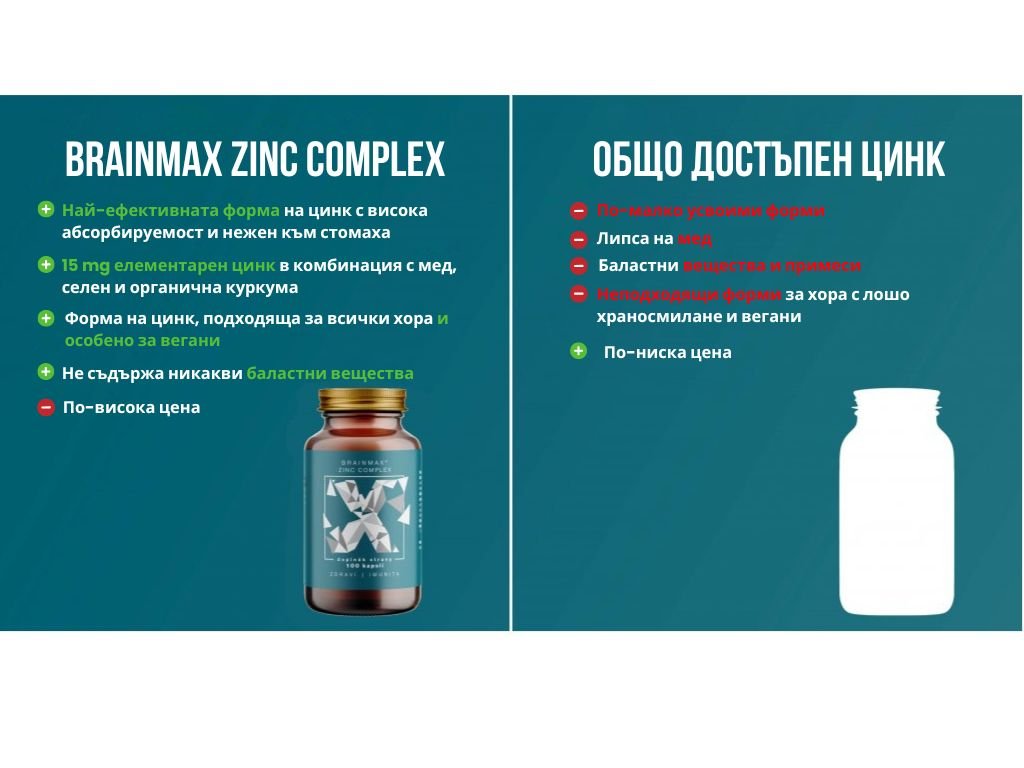 Цинковият комплекс BrainMax има положителен ефект върху:
