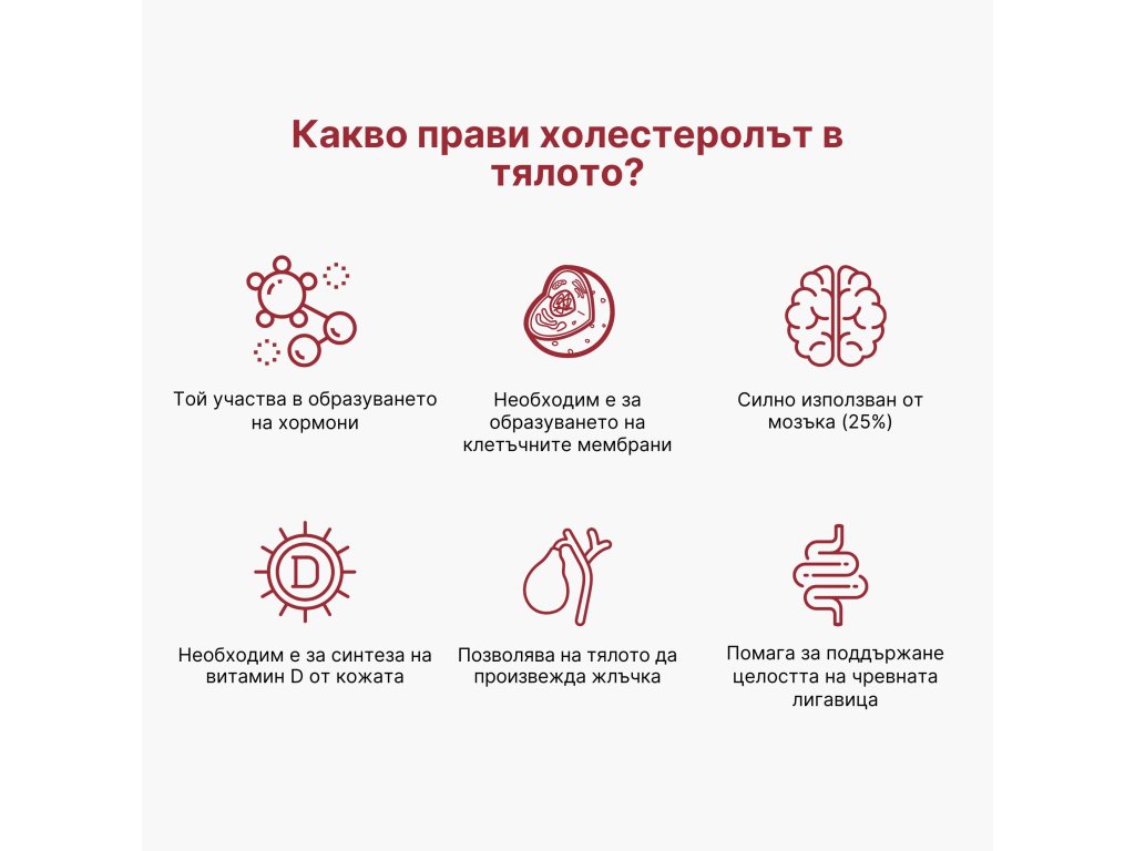 Холестеролът е восъчно вещество, от което тялото ни се нуждае. Той е опакован в частици, наречени липопротеини, които му позволяват да се движи през кръвта. Черният дроб произвежда целия холестерол, от който тялото се нуждае, а също така го разгражда. Холестеролът е от съществено значение не само за правилното производство на хормони, но и за нормалното функциониране на кръвоносната система и мозъкът.