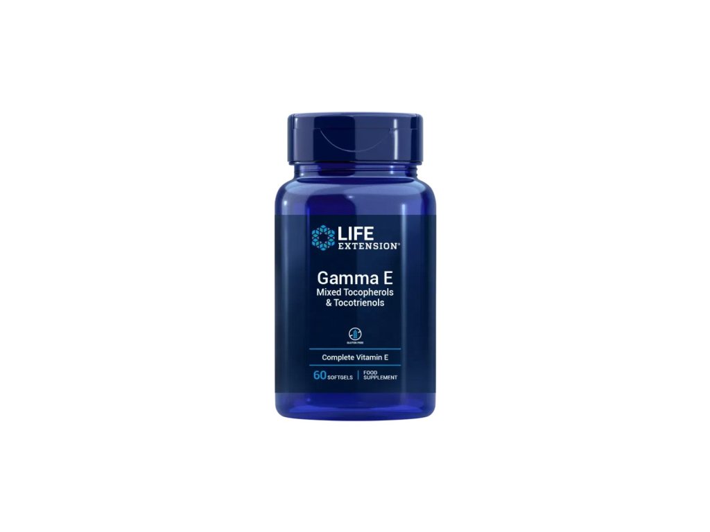 Витамин Е не е единичен витамин, а група от осем свързани мастноразтворими антиоксиданти , които се намират в различни части на растенията. За разлика от повечето добавки с витамин Е, смесените токофероли и токотриеноли Гама Е съдържат всичките осем форми на витамин Е, осигурявайки пълния ефект на антиоксидантната сила на витамин Е в борбата със свободните радикали. Той може също да забави клетъчното стареене, да подпомогне здравето на имунната система, нервната система, очите, когнитивната функция и други .