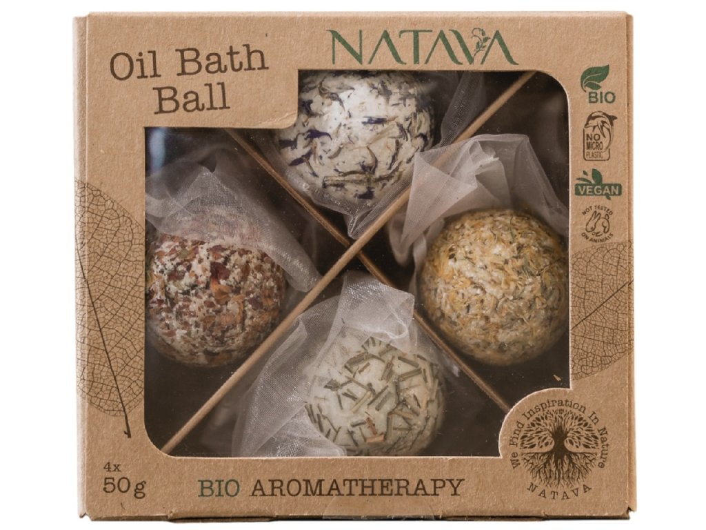 NATAVA топчета масло за вана, подаръчен комплект, 4 × 50 г