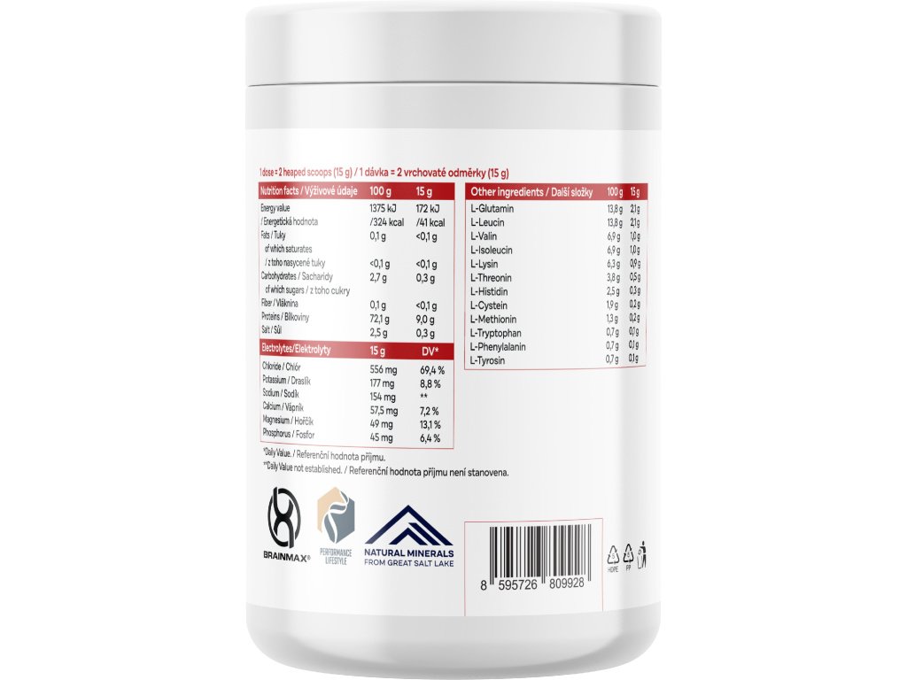 Performance Amino Electrolyte Complex, EAA + електролити, 600 g Комплекс от 12 аминокиселини EAA + електролити за допълване по време на спорт, хранителна добавка