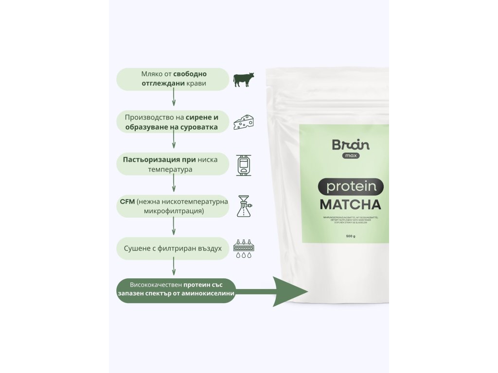 BrainMax Matcha Protein, 500 g Grass-fed протеин с вкус на matcha latte, 14 дози, хранителна добавка