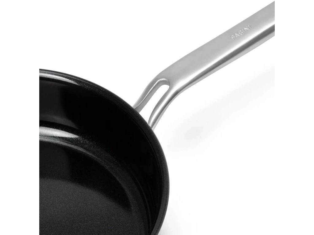 Тиган FABINI Lucca 4.0 Pro, керамична повърхност, Ø 26 см Незалепващ тиган от неръждаема стомана без нитове, изработен от многослойна неръждаема стомана с керамично покритие и без капак