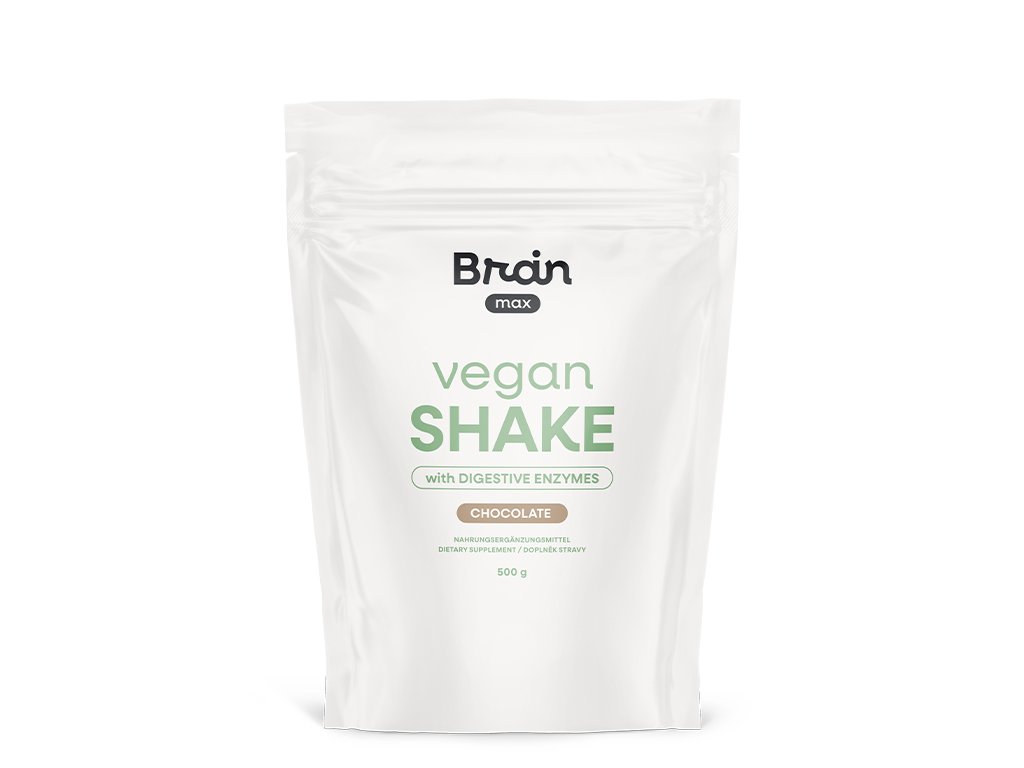 BrainMax Vegan Shake with Digestive Enzymes, Chocolate, 500 g Комплексна билкова формула с храносмилателни ензими и мака, 16 порции, хранителна добавка